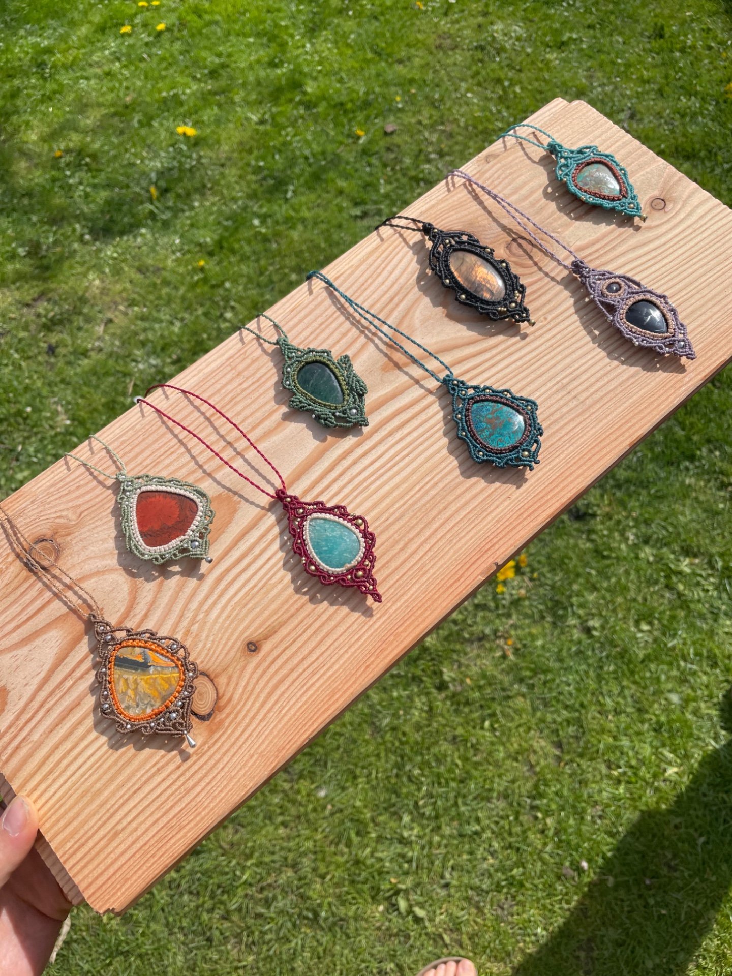 Créations de bijoux vibratoires en micro-macramé : je crée des bracelets, des boucles d’oreilles, des colliers et des bagues.