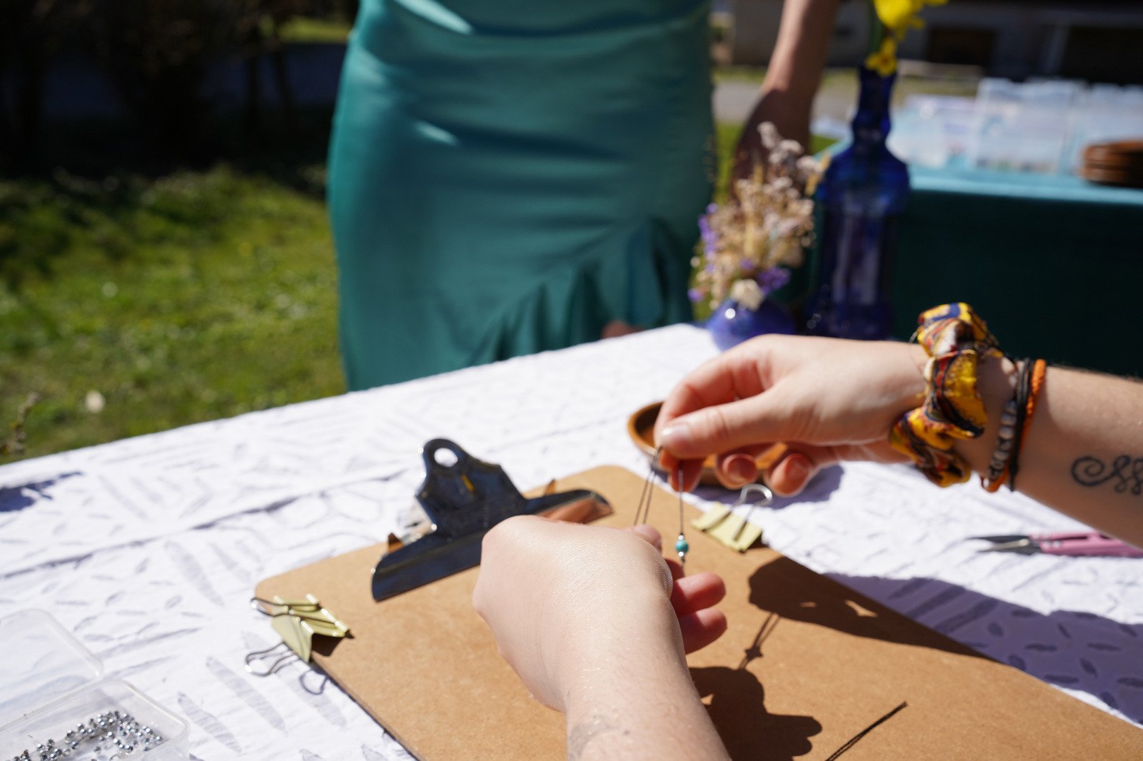 Laura, créatrice de bijoux et animatrice d’ateliers créatifs, propose une animation originale et personnalisée pour les mariages: Le bracelet personnalisé en live