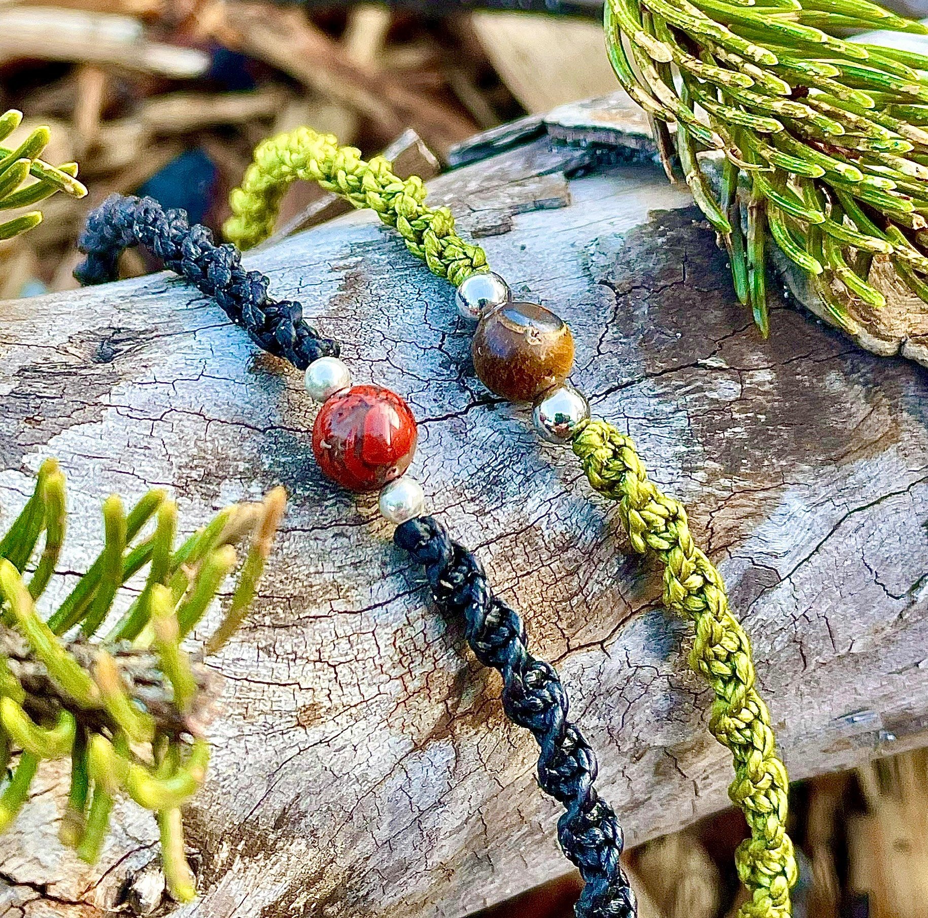 ✔️ 2 perles naturelles : Œil du tigre et Jaspe brescia